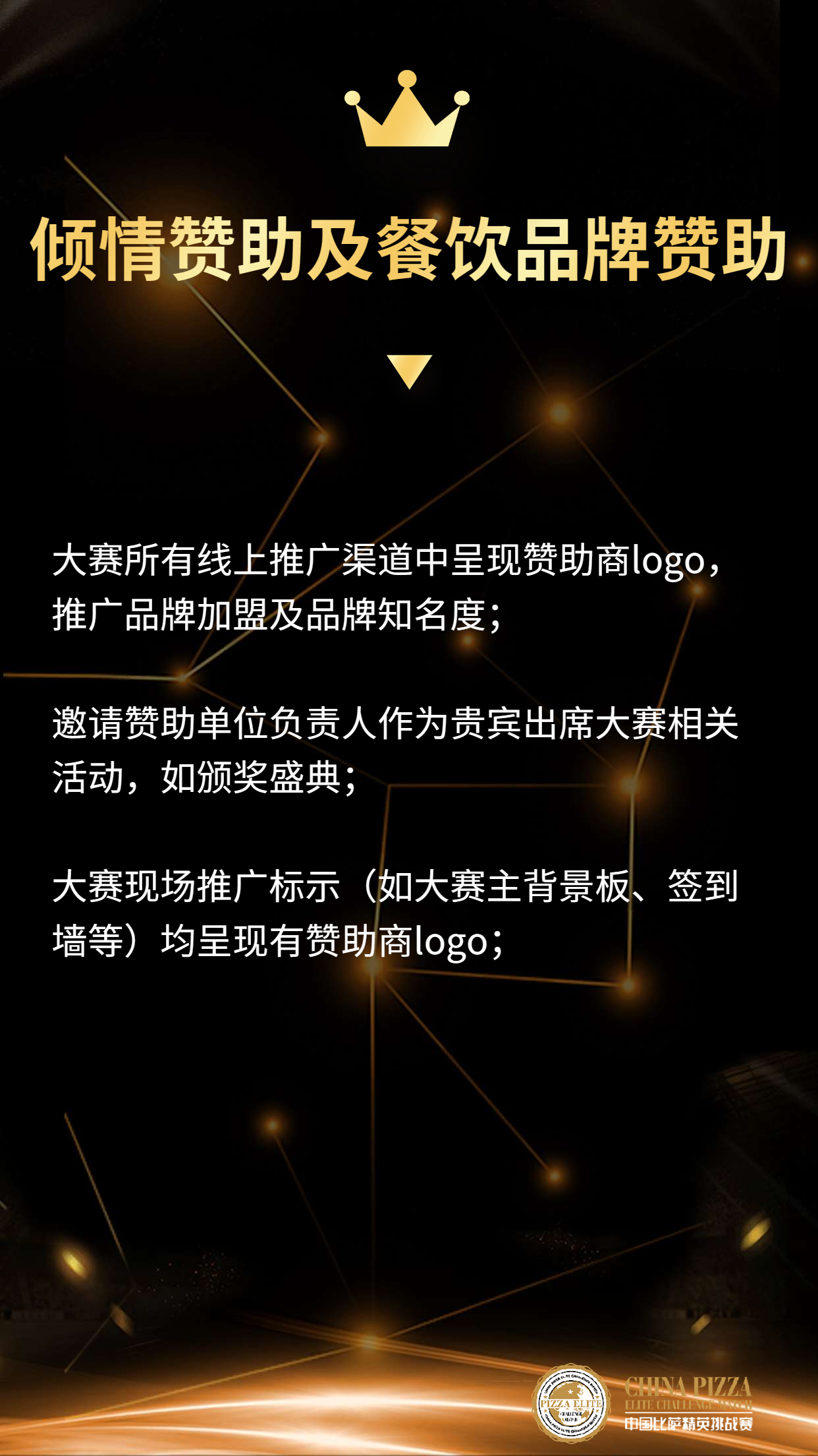 /// 我们希望与更多的合作伙伴一起,共创精品商业赛事,为更多披萨行业志士同仁提供竞技提升的机会和展示自我的舞台!用比赛推动行业发展,共同跑出加速度!